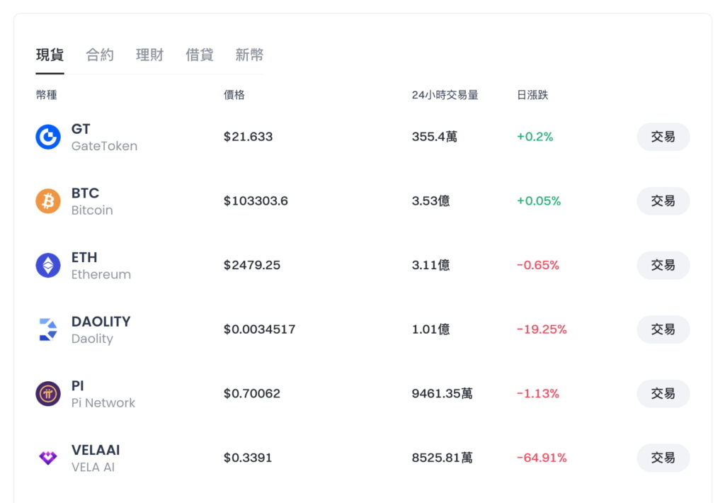 Gate.com(舊稱 Gate.io)的交易選項廣度相當出色: